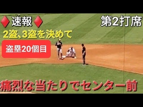♦️速報♦️第2打席【大谷翔平選手】1アウトランナー無しでの打席-強烈な当たりでセンター前ヒット&2盗、3盗を決める vsブリューワーズ〜シリーズ最終戦〜