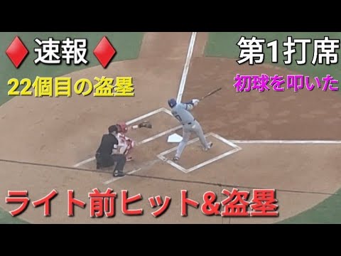 ♦️速報♦️第1打席【大谷翔平選手】リーディングオフでの打席-ライト前ヒット&盗塁(22個目)を決める vsフィリーズ〜シリーズ2戦目〜