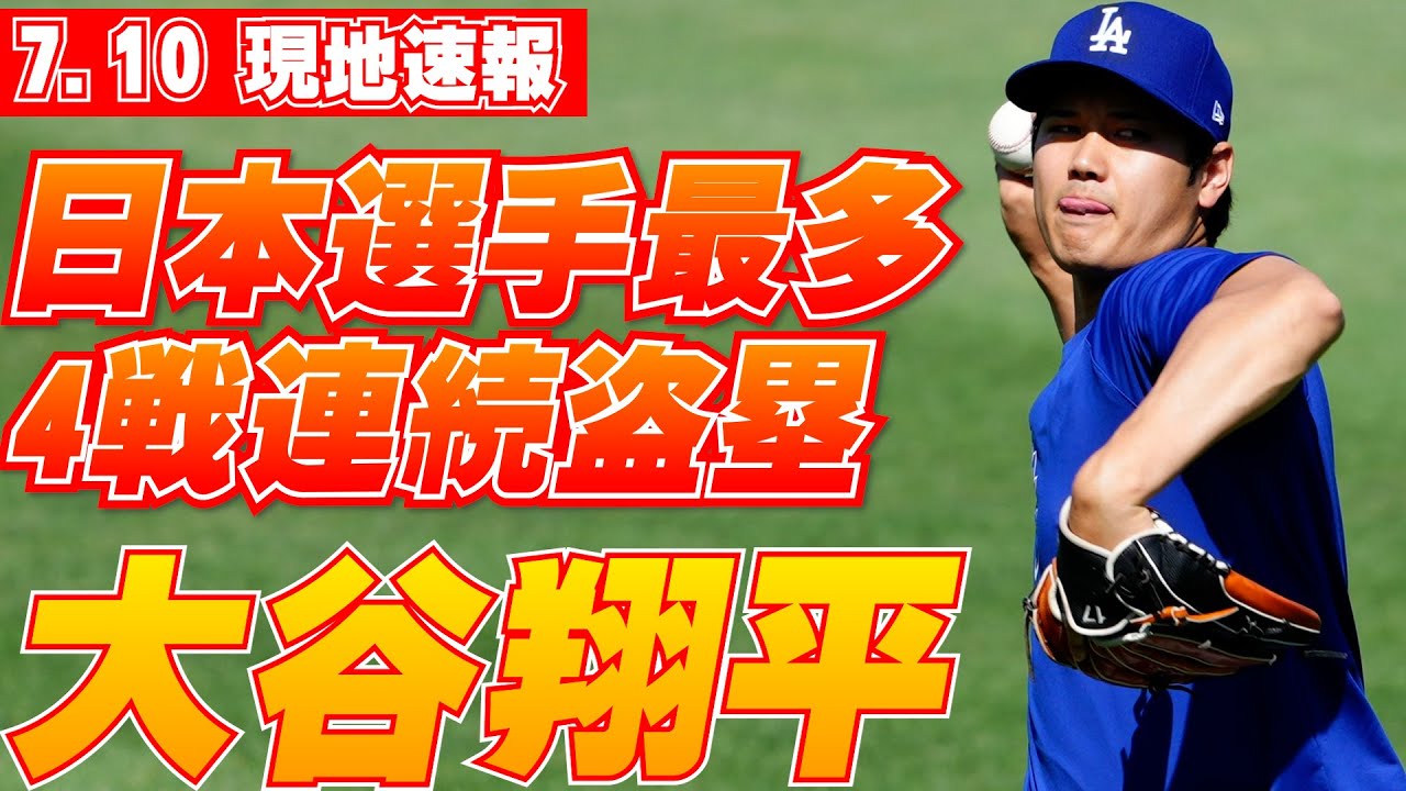ドジャースの大谷翔平投手(30)が10日(日本時間11日)、敵地でのフィリーズ戦に「1番・DH」で先発出場。右前打を放った第1打席に続き、第3打席では中前適時打を放ち、3試合ぶりのマルチ安打をマークした。初回はイチロー、松井稼頭央に並ぶ日本選手最長の4試合連続盗塁もマークしたが、チームはナ・リーグ東地区首位を独走するフィリーズに競り負けてカード負け越しが決定し、今季3度目の3連敗となった。