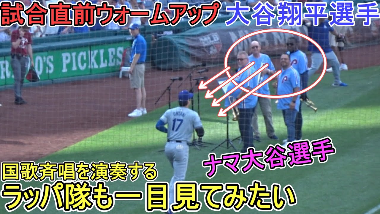 試合直前ウォームアップをする大谷翔平選手。試合前に国歌斉唱を演奏するラッパ隊もナマの大谷翔平選手を近くで一目見てみたい! 対フィラデルフィア・フィリーズ~シリーズ最終戦~ 1番DHで出場の大谷翔平選手 07.11.2024 @shinsukehandyman #大谷翔平 #ドジャース #dodgers 2024angelsBaseballDodgersJapanLos AngelesMajor League BaseballMLBohtaniOhtani ShoheiPhiladelphiaPhilliesshoheiShohei OHtaniウォームアップドジャースフィラデルフィアフィリーズロサンゼルス大谷大谷翔平日本翔平速報 NIHON2020.COM