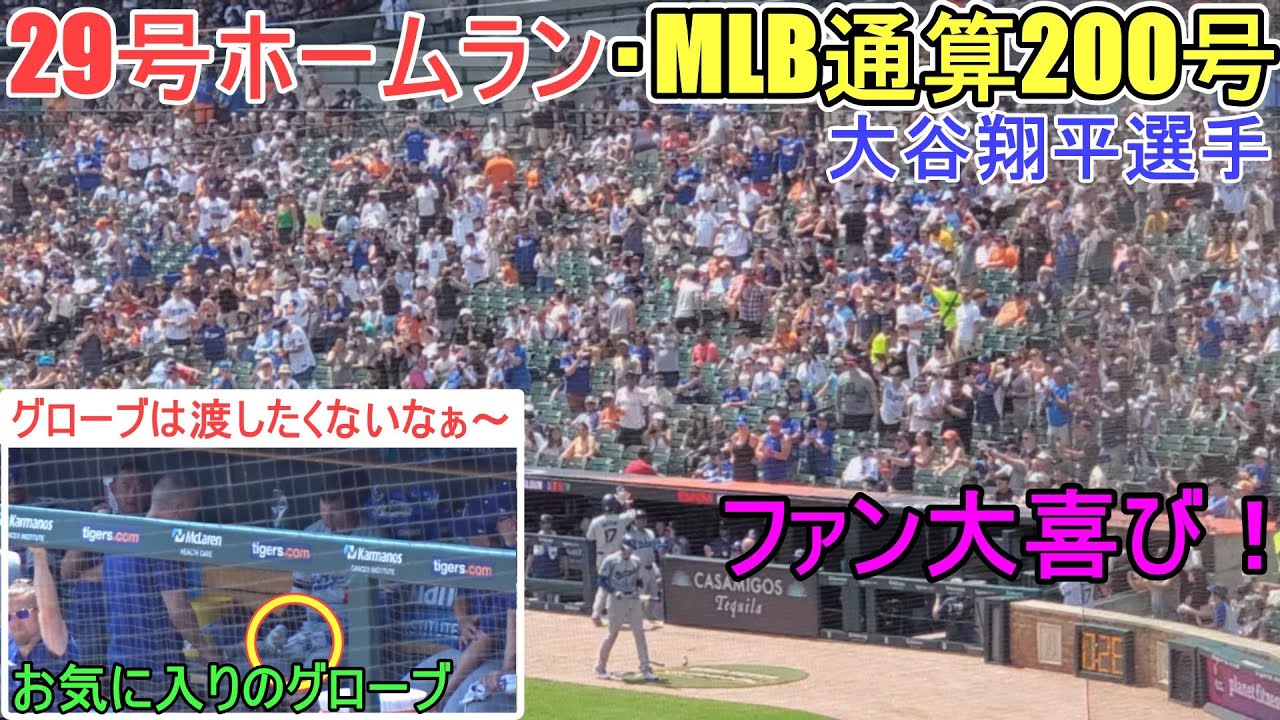 ㊗29号ホームランはMLB通算200号本塁打。スタンドのファンも声を上げて喜ぶ。日本人として史上初の快挙。歴史的快挙の記念にバットとバッティンググローブは渡すが、お気に入りのグローブは渡したくない様子の大谷翔平選手。ダグアウトからダグアウトまで全部見せ。 対デトロイト・タイガース~シリーズ2戦目~ 1番DHで出場の大谷翔平選手。7.13.2024 @shinsukehandyman #大谷翔平 #ホームラン #MLB通算200号 29th29号BaseballDetroitDodgersHomeHRJapanMajor League BaseballMLBMLB通算200号ohtaniOhtani ShoheirunshoheiShohei OHtaniTigersタイガースデトロイトドジャースホームランロサンゼルス大谷大谷翔平日本翔平速報 NIHON2020.COM