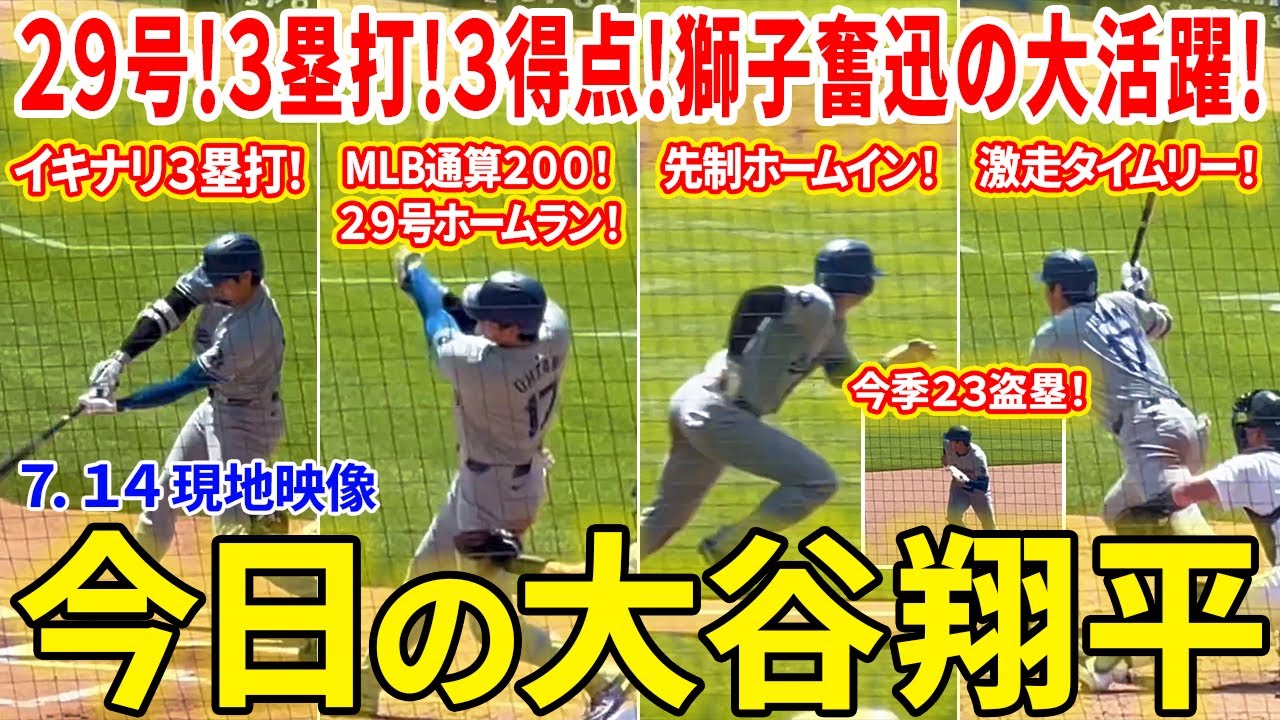 大谷伝説!MLB通算200本目となる29号に初回3塁打!タイムリー2本に今季23盗塁!驚異の活躍!!今日の大谷翔平ダイジェスト【7.14現地映像】