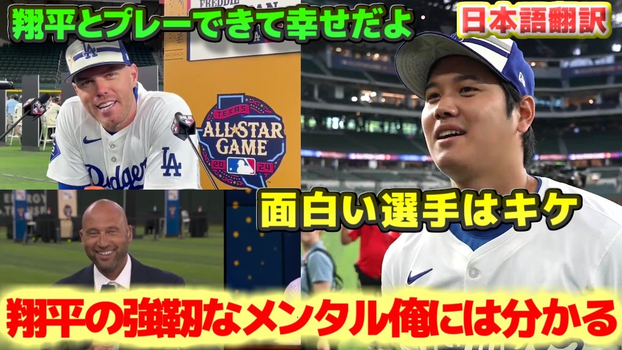 フリーマン選手は大谷選手と念願のチームメイトとなり身近でみた感想について答え、デレク・ジーター氏は大谷選手について騒動があっても動じないその強靭なメンタルを自らの過去と準えて答えており、ドジャースからは誰が一番面白い選手かを大谷選手を含め選出されたメンバーに聞いていました。