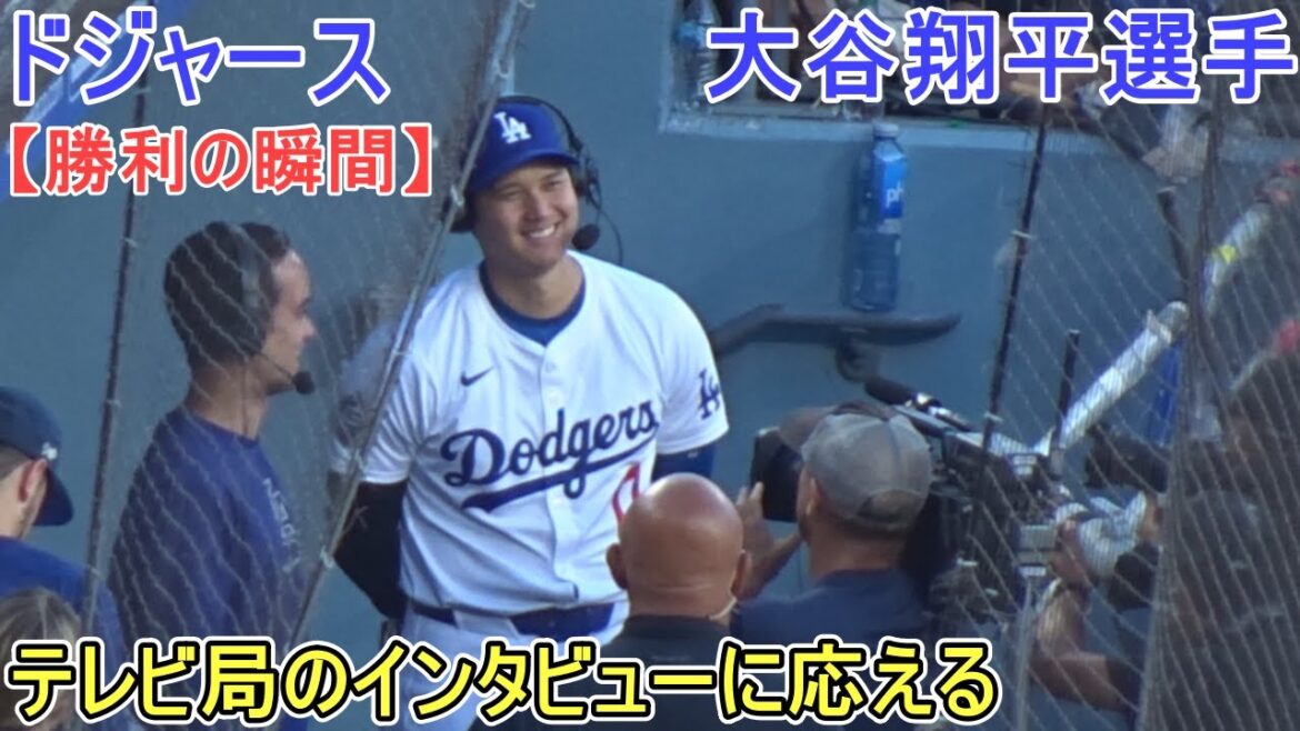 ♢ドジャース勝利の瞬間♢テレビ局のインタビューに応える大谷翔平選手。