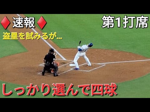 ♦️速報♦️第1打席【大谷翔平選手】リーディングオフでの打席-しっかり選んでフォアボール vs ジャイアンツ〜シリーズ初戦〜
