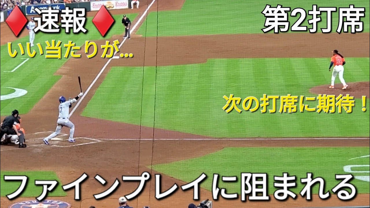 ♦️速報♦️第2打席【大谷翔平選手】リーディングオフでの打席-いい当たりが…相手のファインプレイに阻まれる vsアストロズ〜シリーズ初戦〜