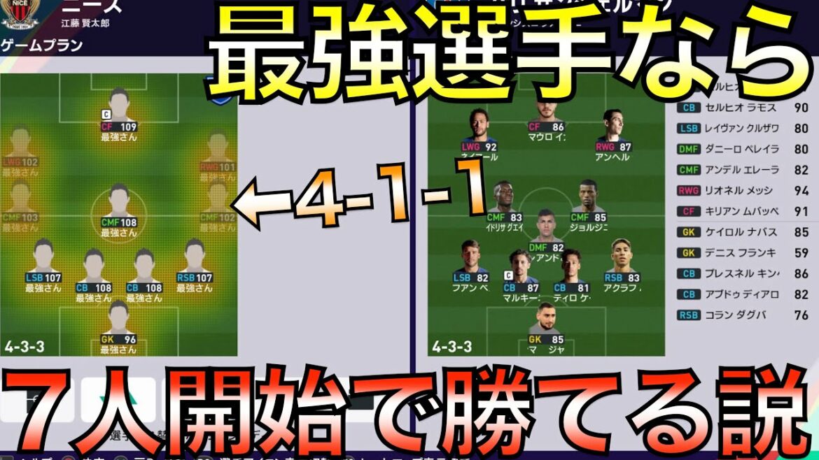 ・身体能力最強でテクニック最低と身体能力最低でテクニック最強を対戦させたらどちらが強いのか?【eFootball ウイニングイレブン2021】