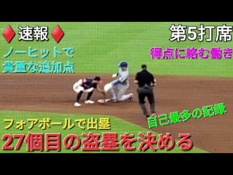 ♦️速報♦️第5打席【大谷翔平選手】リーディングオフでの打席-フォアボールで出塁&27個目(自己最多)の盗塁決める vsアストロズ〜シリーズ最終戦〜