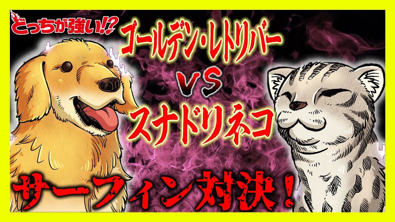 ゴールデン・レトリバーとスナドリネコの、能力を活かしたサーフィン対決!