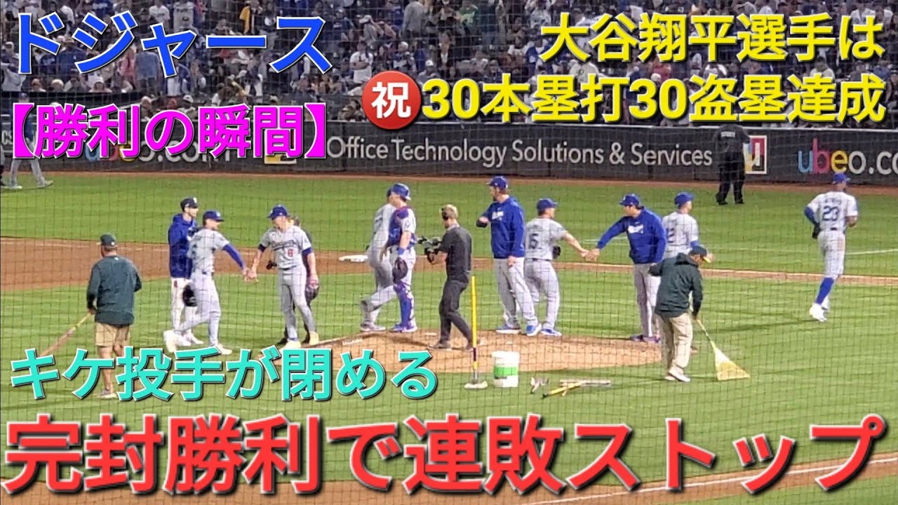 【ドジャース・勝利の瞬間】大谷翔平選手はメジャー日本人選手初の30本塁打30盗塁達成㊗️ドジャースは見事な完封勝利で連敗ストップ‼️