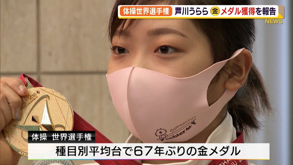 体操の世界選手権で金メダルを獲得した富士市出身の芦川うらら選手が11月5日、SBS・静岡新聞社を訪れ、喜びを報告しました。