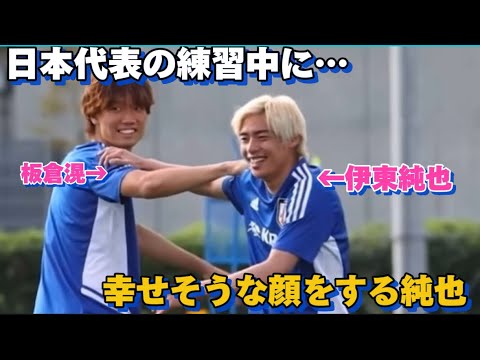 日本代表の練習中に板倉滉と一緒にアップをし幸せそうな顔をする伊東純也が可愛すぎる!!