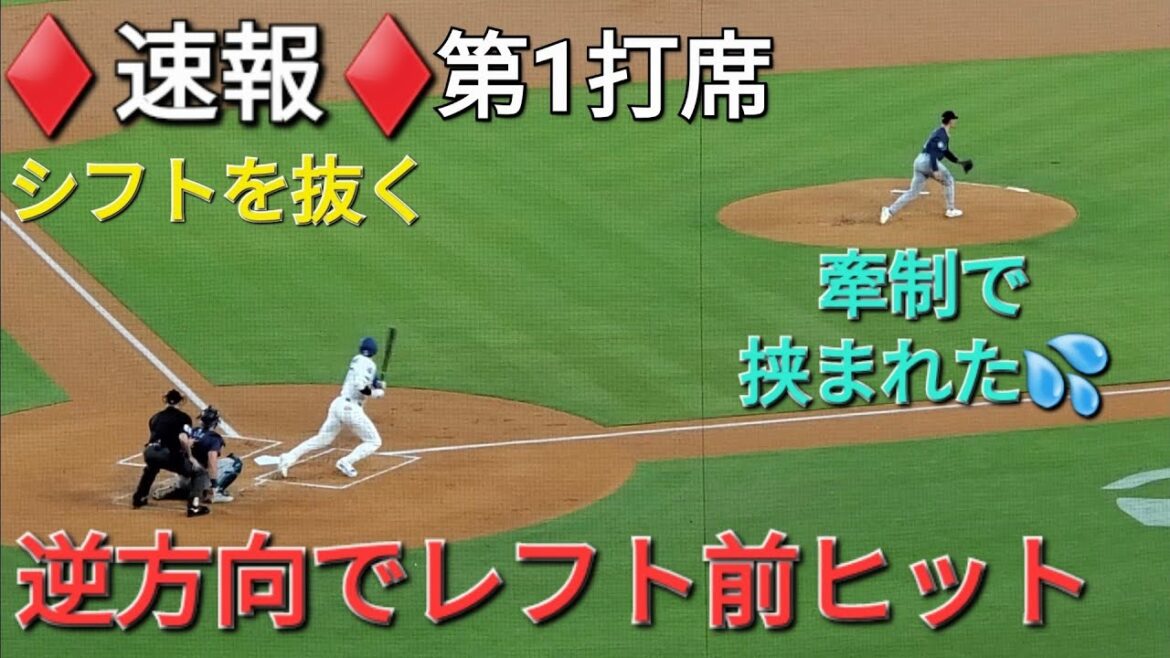 ♦️速報♦️第1打席【大谷翔平選手】リーディングオフでの打席-シフトを抜くレフト前ヒット vsマリナーズ〜シリーズ初戦〜