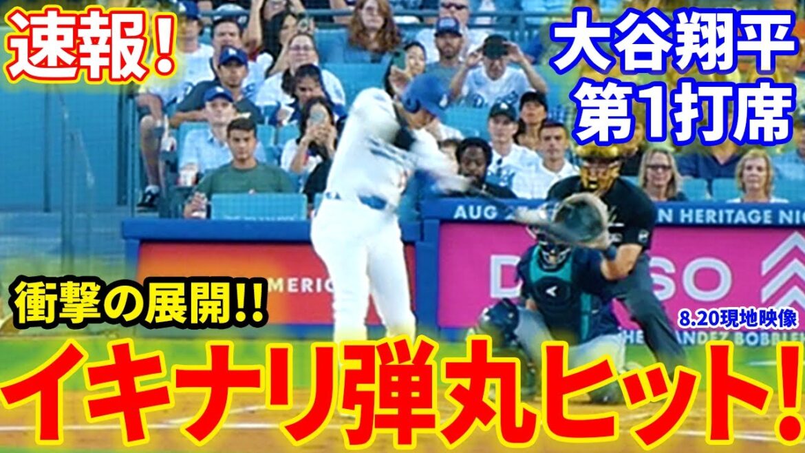 速報!イキナリ弾丸ヒット!直後に衝撃の展開!第1打席【8.20現地映像】マリナーズ0-0ドジャース 1番DH大谷翔平 1回裏無死ランナーなし