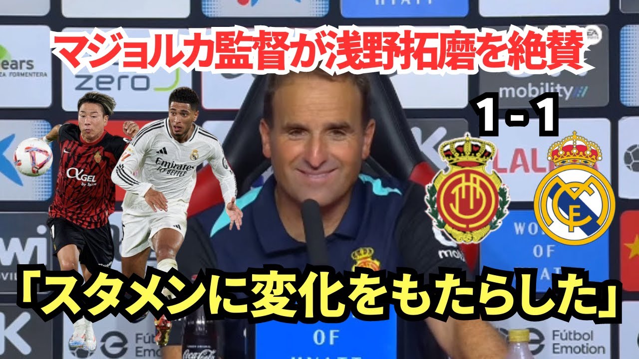 ⚽ ラリーガ開幕戦、マジョルカ対レアル・マドリードの試合後、マジョルカ監督が浅野拓磨とチームのパフォーマンスについて語ります。先制された状況から引き分けに持ち込んだチームの奮闘と、浅野拓磨がスタメンに変化をもたらした重要な役割を果たしたシーンを振り返ります。