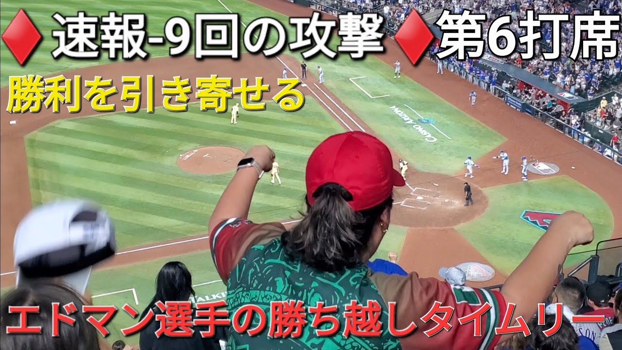 ♦️速報♦️〜9回の攻撃〜第6打席【大谷翔平選手】エドマン選手の勝ち越しタイムリー後の打席 – vs dバックス〜シリーズ2戦目〜