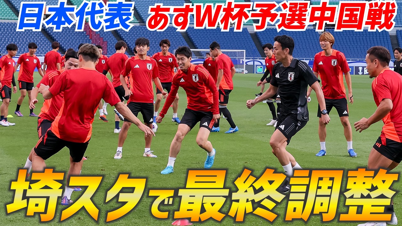 日本代表は4日、北中米W杯アジア最終予選・中国戦(5日・埼玉)に向け、試合会場の埼玉スタジアム2002で前日練習を行った。冒頭約15分間が報道陣に公開され、招集メンバー27人全員がランニングやボール回しなどのウォーミングアップメニューをこなした。