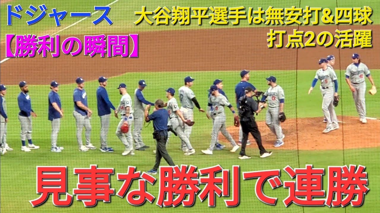 【ドジャース・勝利の瞬間】大谷翔平選手は無安打&四球で打点2の活躍⚾️ドジャースは見事な勝利で連勝⚾️シリーズタイで終了‼️