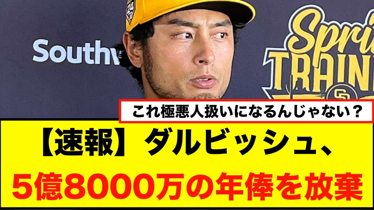【悲報】ダルビッシュ、5億8000万の年俸を放棄「復帰へのリハビリしてない状況でお金はもらいたくない」wwwwwwwww