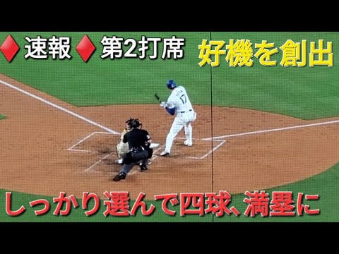 ♦️速報♦️第2打席【大谷翔平選手】2アウトランナー1塁、2塁での打席 – しっかり選んでフォアボールで満塁にする vs パドレス〜シリーズ初戦〜