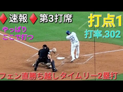 ♦️速報♦️第3打席【大谷翔平選手】2アウトランナー1塁、2塁での打席 – フェン直の勝ち越しタイムリー2塁打 vs パドレス〜シリーズ2戦目〜