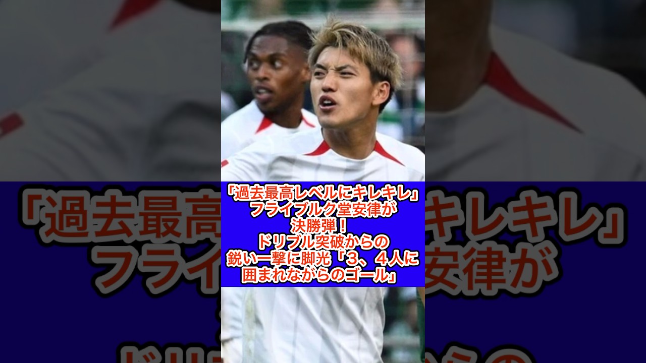 【フライブルク MF 堂安律】「過去最高レベルにキレキレ」フライブルク堂安律が決勝弾! ドリブル突破からの鋭い一撃!「3、4人に囲まれながらのゴール」(構成●サッカーダイジェストWeb編集部より抜粋)