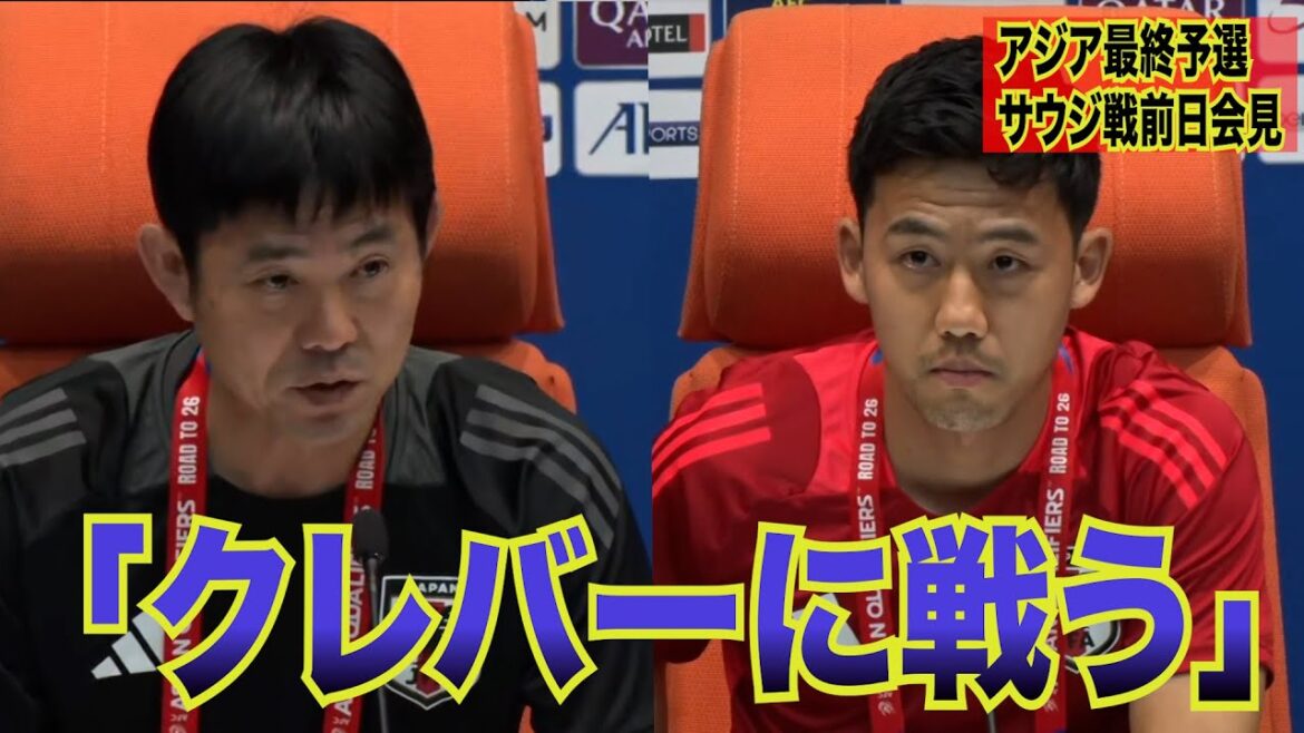 日本時間11日、アウェイでW杯アジア最終予選サウジアラビア戦に臨むサッカー日本代表の森保一監督とキャプテン・遠藤航が前日会見に登場した。意気込みを聞かれると森保監督は「厳しい戦いを覚悟」と述べ、遠藤も「タフな戦いを予想」とアウェイの地での難敵サウジアラビアとの一戦に警戒感を示した。 それでも遠藤は「アウェイの中でも勝利を目指していきながら、クレバーに戦って行ければ」と話した。#サッカー日本代表 #サッカー #森保一 #遠藤航 2022 FIFA World Cup2022 World CupFIFA 2022FIFA World Cup 2022FIFA World Cup Qatar 2022footballJapanqatar 2022soccerWorld CupWorld Cup 2022日本森保一 NIHON2020.COM