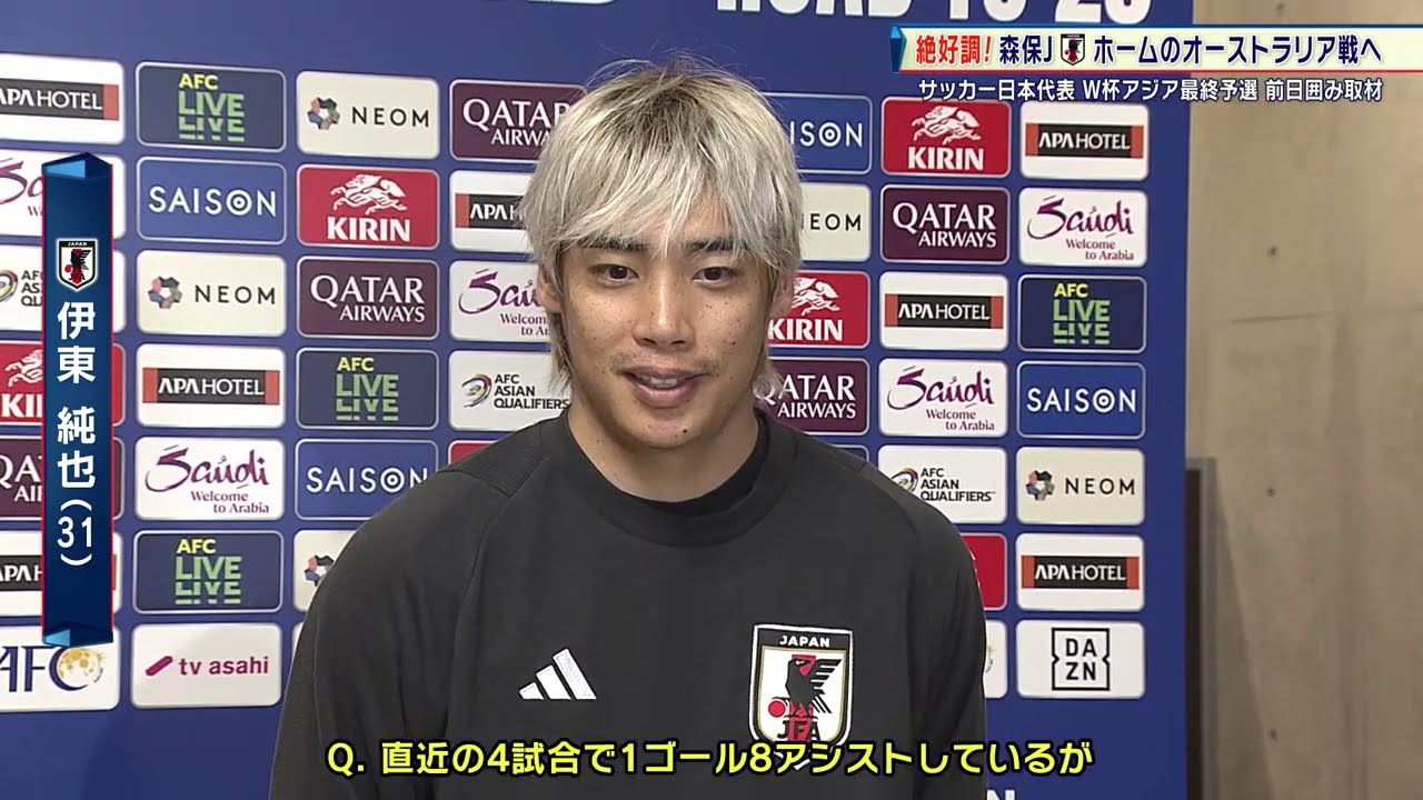 北中米ワールドカップアジア最終予選を3戦全勝。14ゴール0失点と絶好調のサッカー日本代表が15日にホーム(埼玉スタジアム2002)で行われるオーストラリア戦に向けてのトレーニング後、取材に応じた。