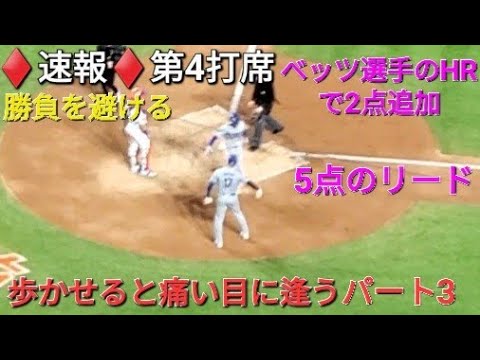 ♦️速報♦️第4打席【大谷翔平選手】1アウトランナー1塁での打席ー 3回目のフォアボールで出塁 vsメッツ〜NLCS第4戦〜
