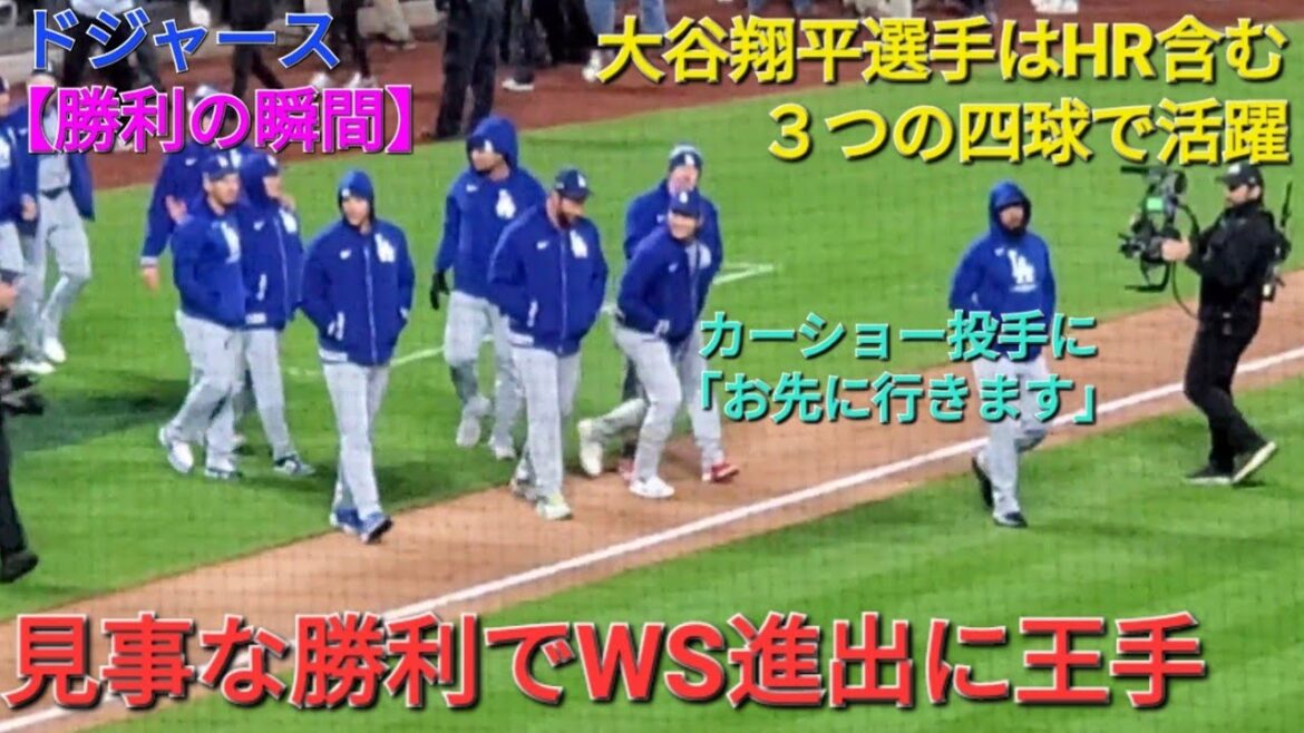 【ドジャース・勝利の瞬間】大谷翔平選手は先頭打者ホームラン含む3つの四球で活躍⚾️ドジャースは見事な連勝でワールドシリーズ進出に王手‼️