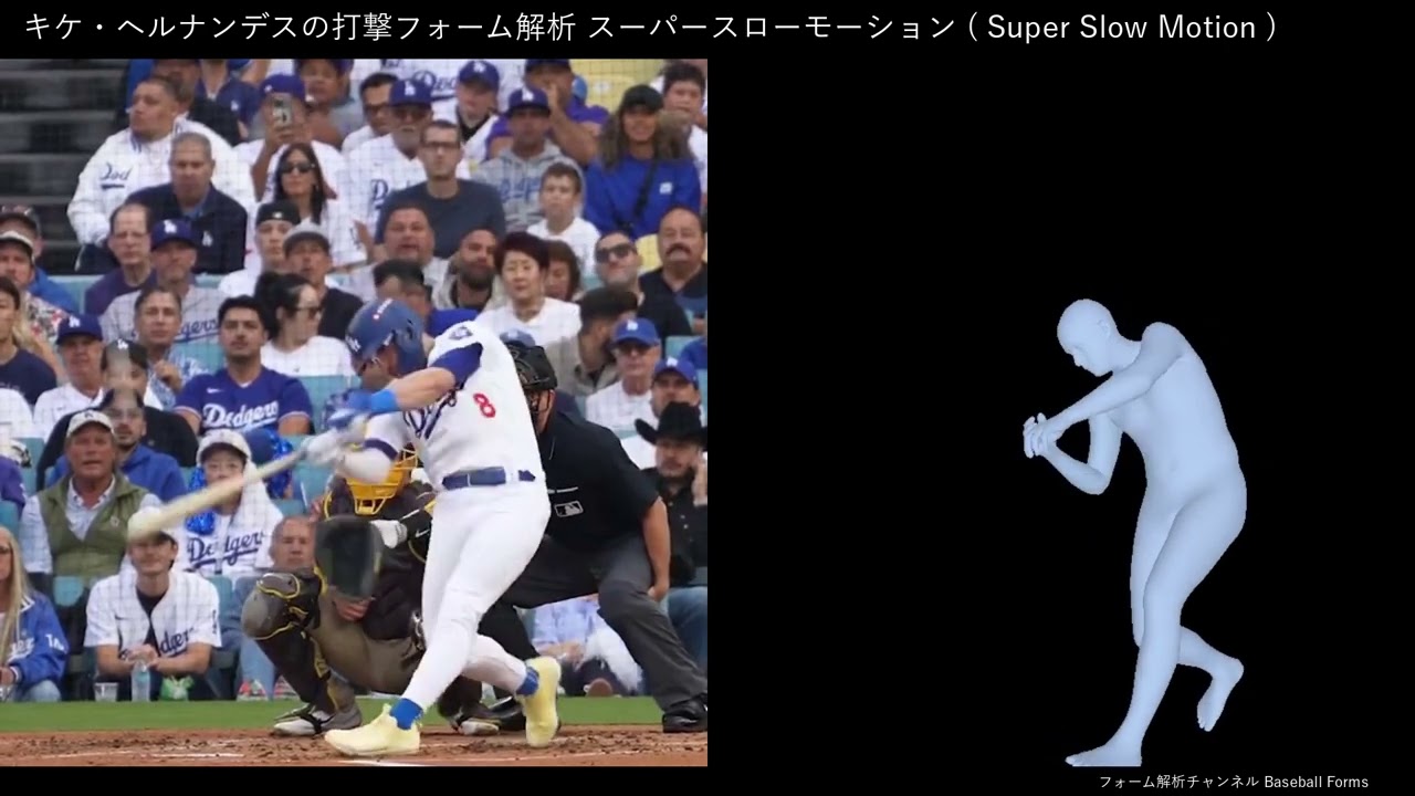 キケ・ヘルナンデスの打撃フォーム解析 2024年 ドジャース ダルビッシュから先制ホームラン 【右正面から】