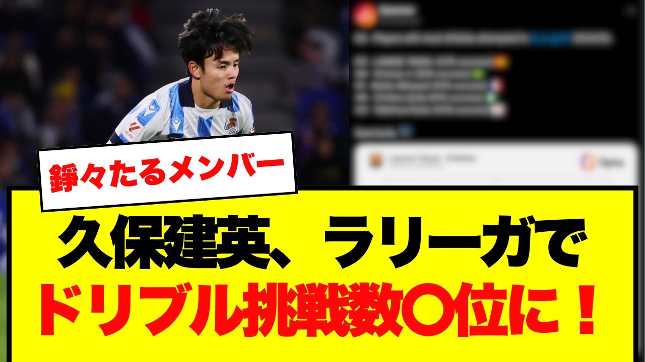 OptaJoseによる2024/25シーズンのラ・リーガで最も多くドリブルを試みた選手ランキングをサクッとお届け。久保建英もランクイン。
