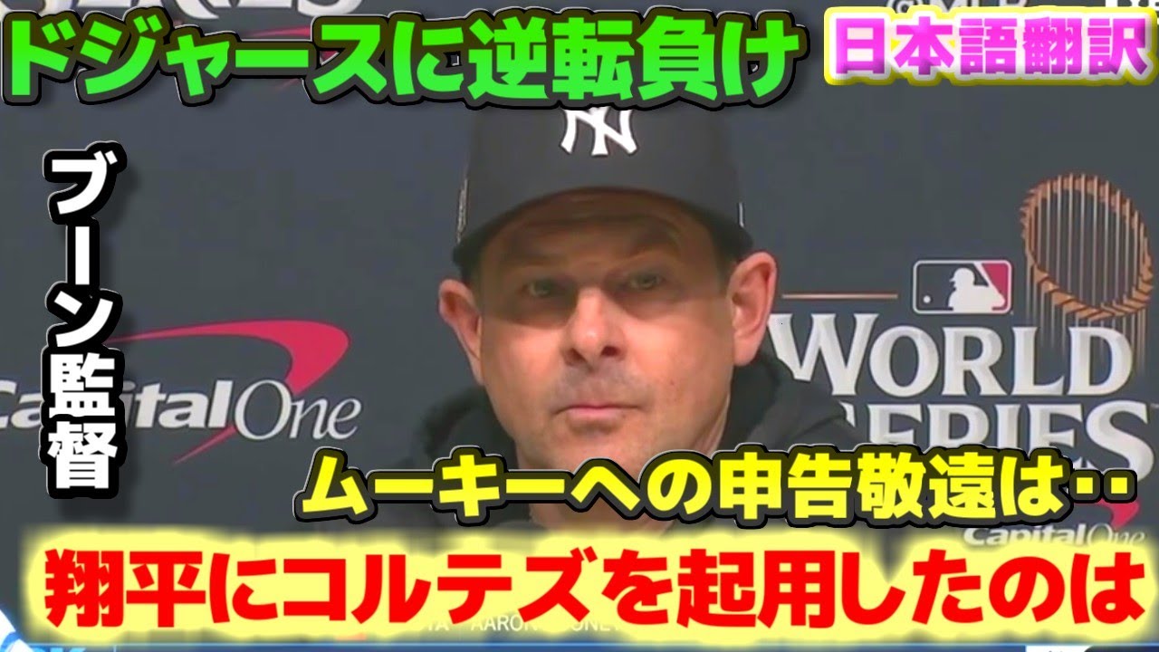 ヤンキースのアーロン・ブーン監督が試合後会見を行い10回にコルテズ投手を起用したことなどを聞かれていました。