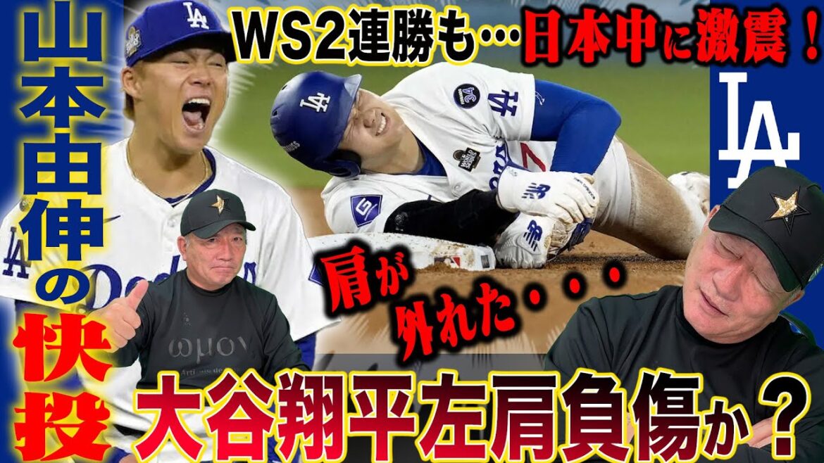 ドジャースの大谷翔平投手は26日(日本時間27日)、本拠地で行われたヤンキースとのワールドシリーズ第2戦に「1番・指名打者」で先発出場。7回に四球を選んで二盗を試みてアウトになった際、左肩を痛めたような仕草を見せ、一時起き上がれない状況に。トレーナーらが駆けつけ、場内が騒然となった。