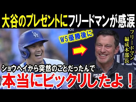 大谷翔平のサプライズプレゼントにフリードマン編成本部長が驚愕の本音!「ショウヘイって奴は本当に…」ドジャース優勝直後の大谷の神対応【海外の反応/MLB/野球】
