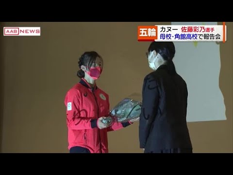 母校角館高校の生徒たちに大きな拍手で迎えられた佐藤彩乃選手。