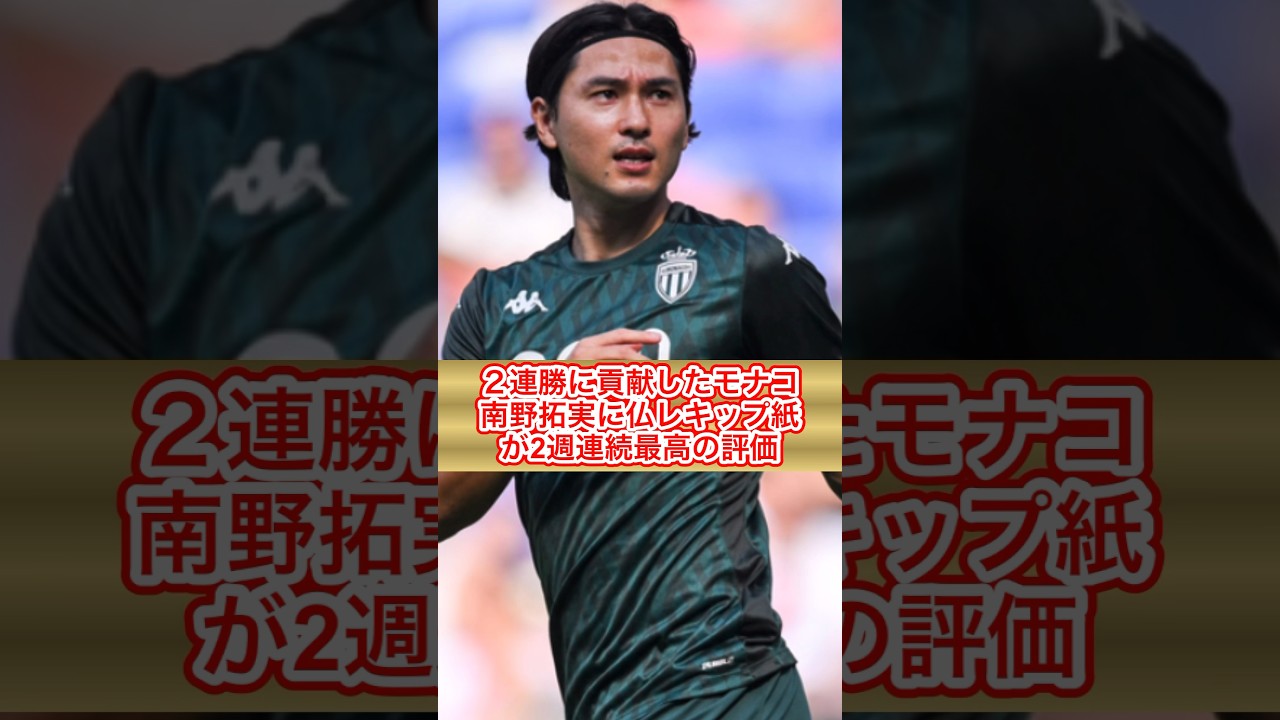 【モナコ FW 南野拓実】2連勝に貢献したモナコ南野拓実に仏レキップ紙が2週連続最高の評価(日刊スポーツより抜粋)