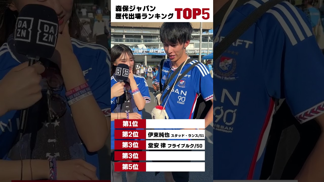 【#DAZN最強クイズ】「森保ジャパン通算出場ランキングTOP5」 #代表みようぜ|AFCアジア予選 9/5(木)19:35「日本vs中国」|9/10(火)25:00バーレーンvs日本 #shorts