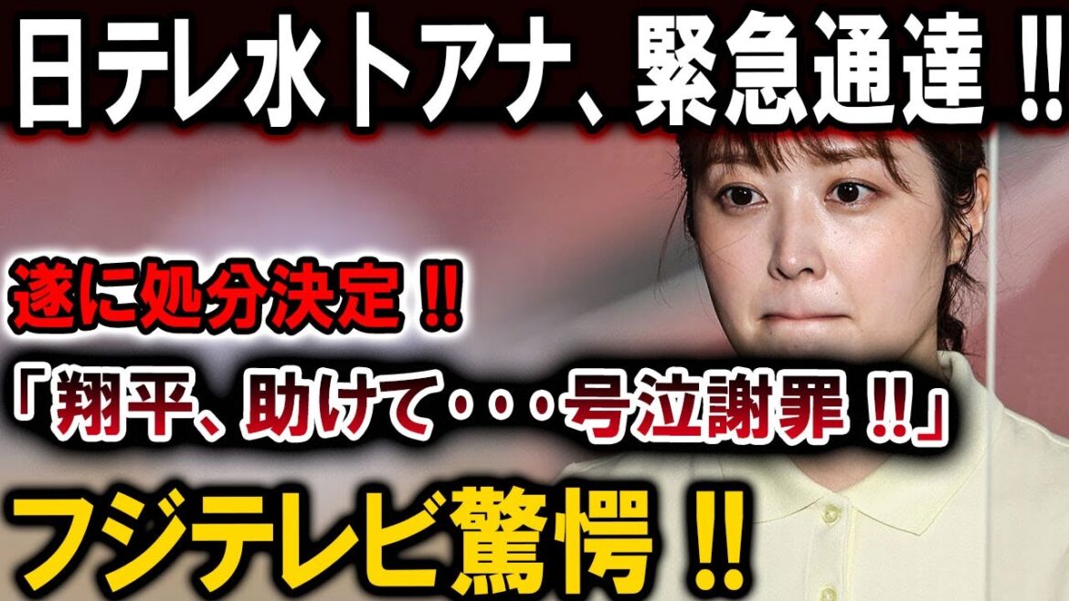 【速報】日テレ水卜アナ、緊急通達 !!遂に処分決定 !! 「翔平、助けて・・・号泣謝罪 !!」フジテレビ驚愕 !!
