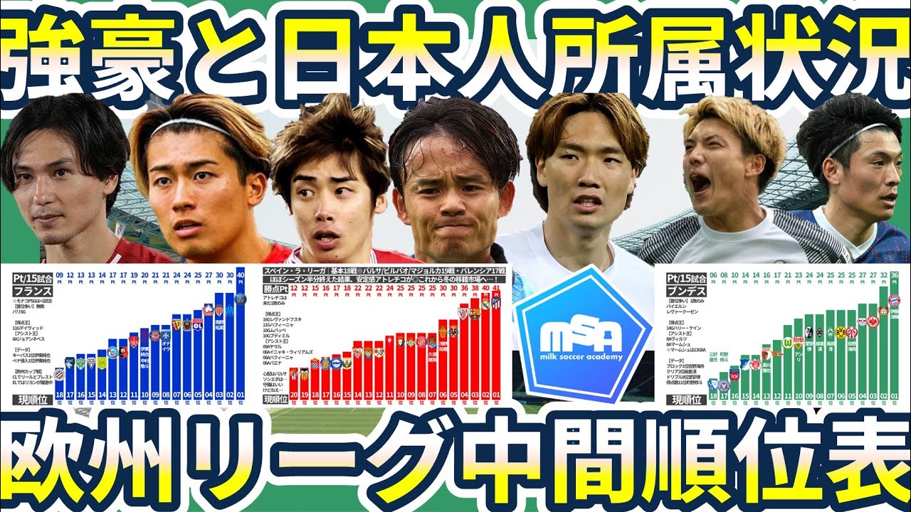 #順位表 #ブンデス #リーグアン #スペイン #佐野海舟 #町野修斗 #久保建英