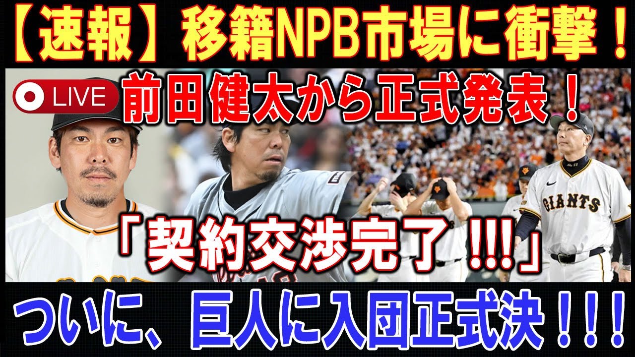 【LIVESTREAM】【世界激震】移籍NPB市場に衝撃 ! ! !前田健太から正式発表 ! ! ! 「契約交渉完了 !!!」 . . .ついに、巨人に入団正式決 ! ! !【速報】