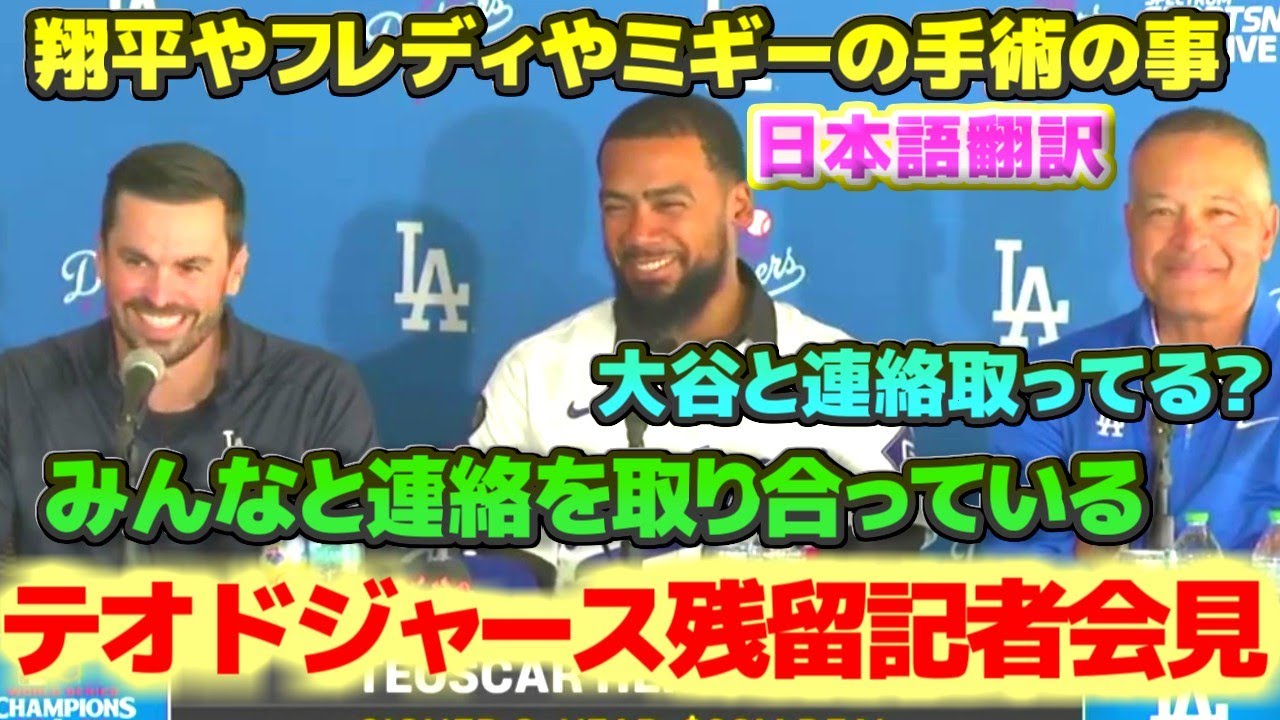 ブランドン・ゴームスGMとロバーツ監督が同席しテオスカー・ヘルナンデス選手の記者会見が行われました。