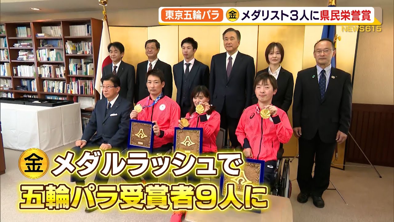 メダリストに新たな勲章です。東京オリンピックとパラリンピックで金メダルを獲得した県内出身の3選手に12月16日、県民栄誉賞が贈られました。