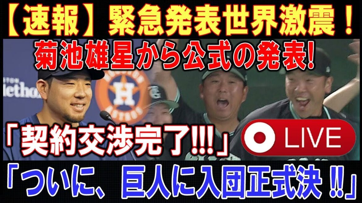 【LIVESTREAM】【世界激震】緊急発表世界激震 ! ! !菊池雄星が電撃発表 ! ! ! 「契約交渉完了!!!」 . . .「ついに、巨人に入団正式決 !!」. . .【速報】