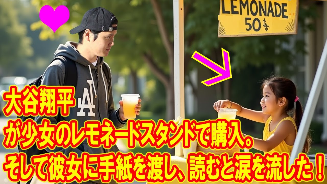 大谷翔平が少女のレモネードスタンドで購入。そして彼女に手紙を渡す。読んだ彼女は涙を流す!
