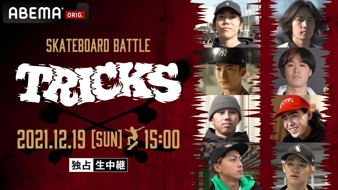 『スケボーバトル”TRICKS”』はABEMAで独占生中継!
