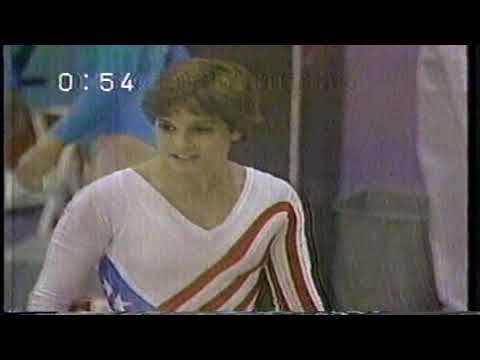 採点規則は満たしているのでしょうが、サボーやポーカ、この後の望月のり子さんと比べると内容が全然貧弱です。前宙懸垂なら分かりますが、高棒に尻で乗るとか70年代?ひたすらけ上がり倒立3回もどうなんでしょうか?トカチェフで手を放す前に脚が開いて膝が緩んでいます。臥反転前方屈身宙返りでの膝の緩み、着地の両足1歩。トカチェフ0.05、前方屈身宙返り減点なし、着地で0.1減点ということでしょうか?半ひねり高棒懸垂~け上がり倒立~トカチェフ飛び越し~け上がり倒立~車輪~臥反転前方屈身宙返り高棒座、飛び低棒倒立、け上がり倒立~低棒を飛び越えての屈身コマネチ降り。