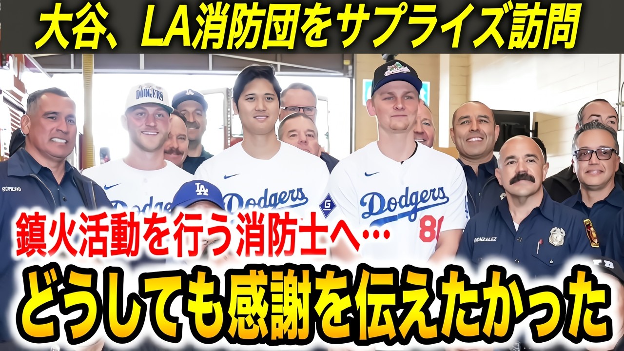 ドジャースの大谷翔平選手は、甚大な被害を被ったロサンゼルスの山火事の鎮火を行う消防団を電撃訪問