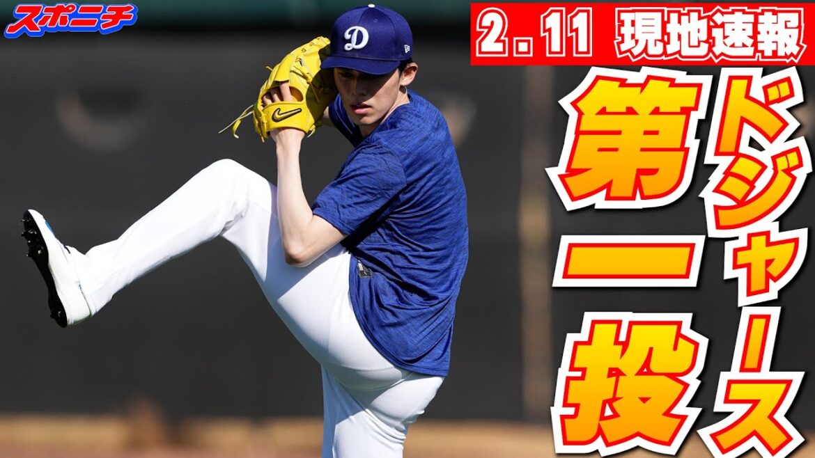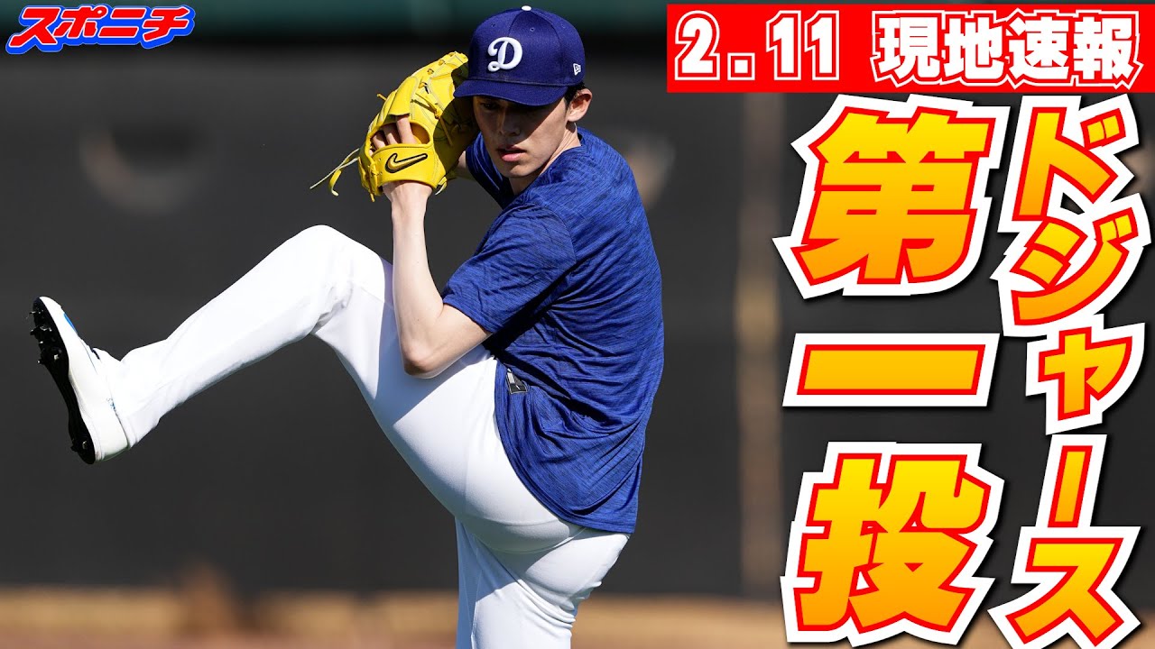 午後にグラウンドでウオーミングアップを行った後は初のキャッチボールを開始。投手コーチ、チームスタッフ、SNS担当ら総勢16人に見守られながらドジャースでの第一投を投じた。距離は約30メートルまで伸ばし、約20分間行った。キャッチボールの後はトレーナーや理学療法士が見守る中、ダッシュを繰り返した。