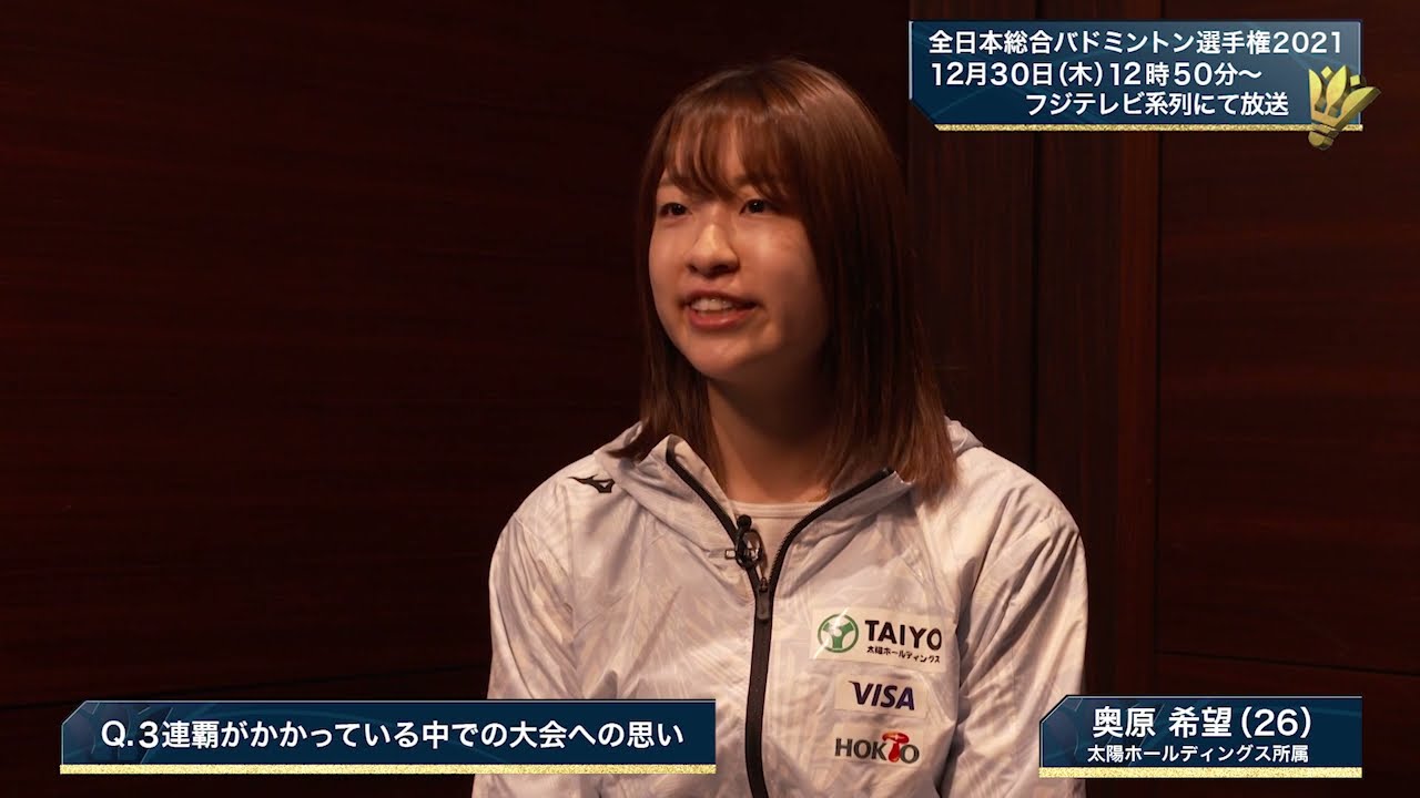 3連覇を目指す #奥原希望 選手のインタビュー。